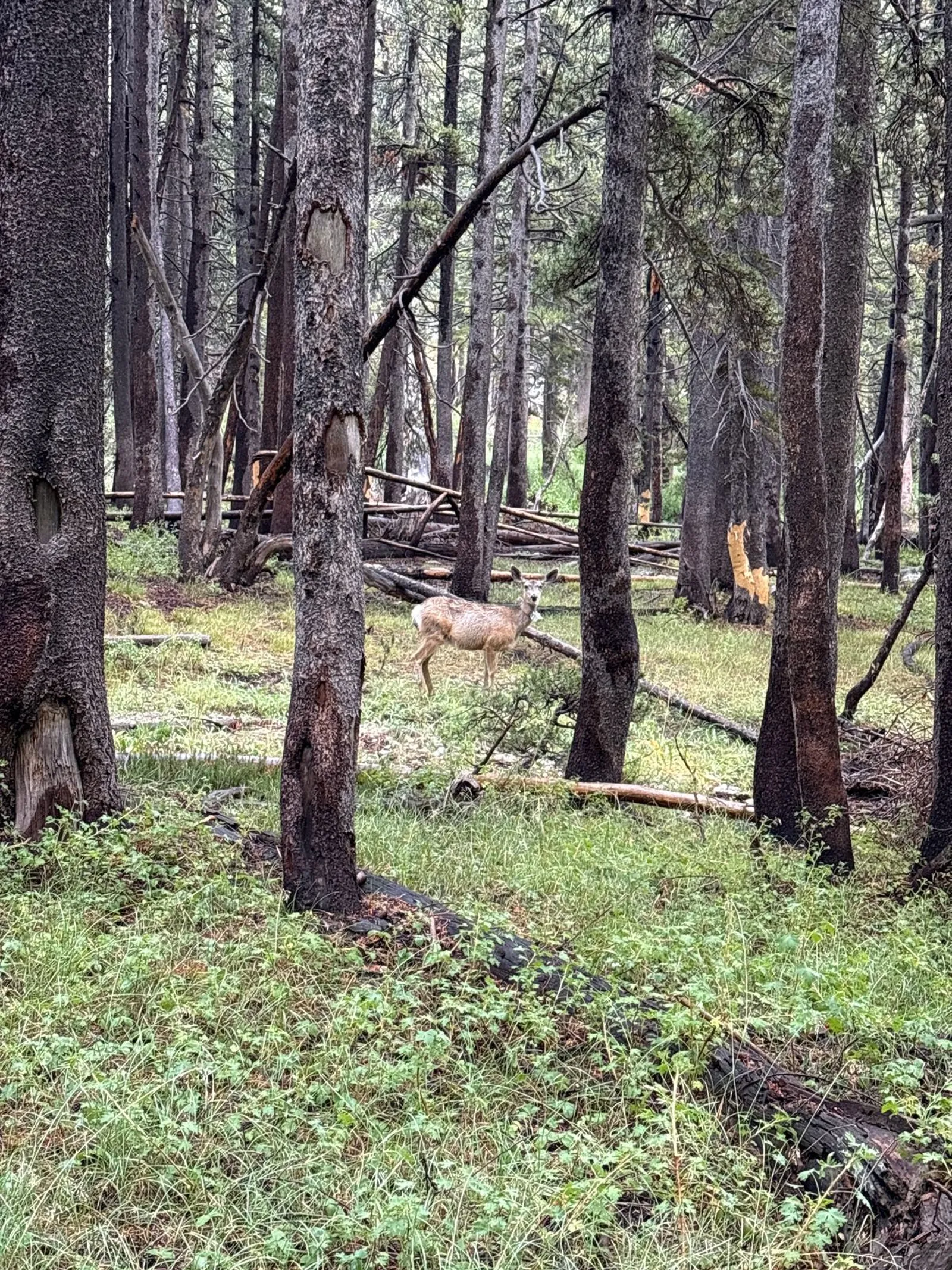 I live at sea level, so I always try to arrive at the trailhead a day early to allow for some acclimatization and to do a final gear test before heading out. All of the nearby public campgrounds were full. I probably could have found a first-come, first-serve spot in one of them, but just to be safe I reserved a tent site at the Creekside RV Park, at 8,300 ft elevation. Although I was only there for a few hours, I appreciated its clean facilities, private campsites, and strict quiet hours. I would definitely stay there again. I pulled in at around 8pm, set up my tent in the moderate rain, and went to sleep not long after.